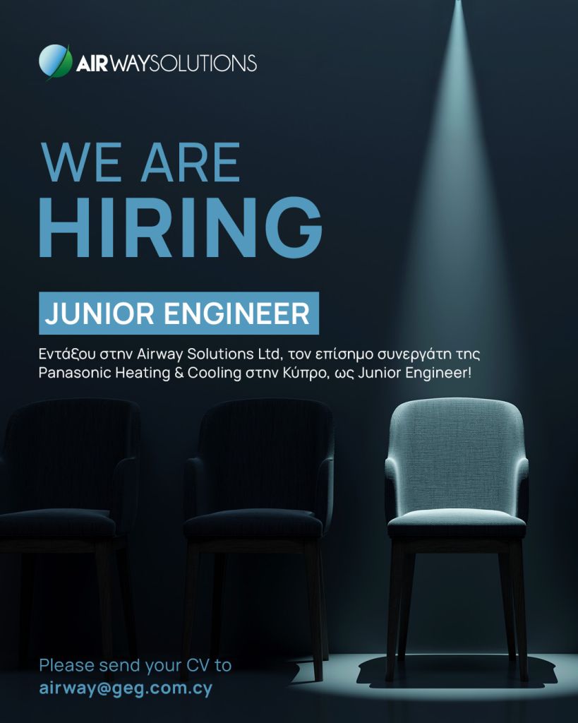 Εντάξου στην Airway Solutions Ltd, τον επίσημο συνεργάτη της Panasonic Heating & Cooling στην Κύπρο, ως Junior Engineer και ξεκίνησε την καριέρα σου στον τομέα του HVAC! Απόκτησε πρακτική εμπειρία στον σχεδιασμό, την εγκατάσταση και τη συντήρηση συστημάτων, υποστηρίζοντας την εμπορική μας ομάδα σε ενδιαφέροντα οικιστικά, εμπορικά και βιομηχανικά έργα. Στους πρώτους μήνες συνεργασίας σου θα συμμετέχεις ενεργά στη μελέτη και υλοποίηση HVAC έργων, αποκτώντας πρακτική εμπειρία και εξοικείωση με σύγχρονες τεχνολογίες και λύσεις του κλάδου.